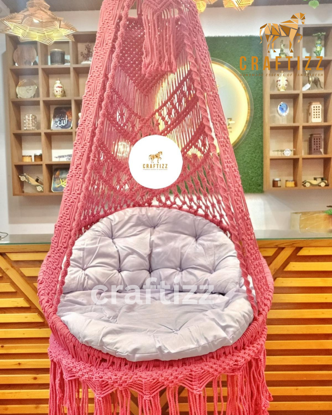 Material: Steel frame, 100% pure cotton macramé
