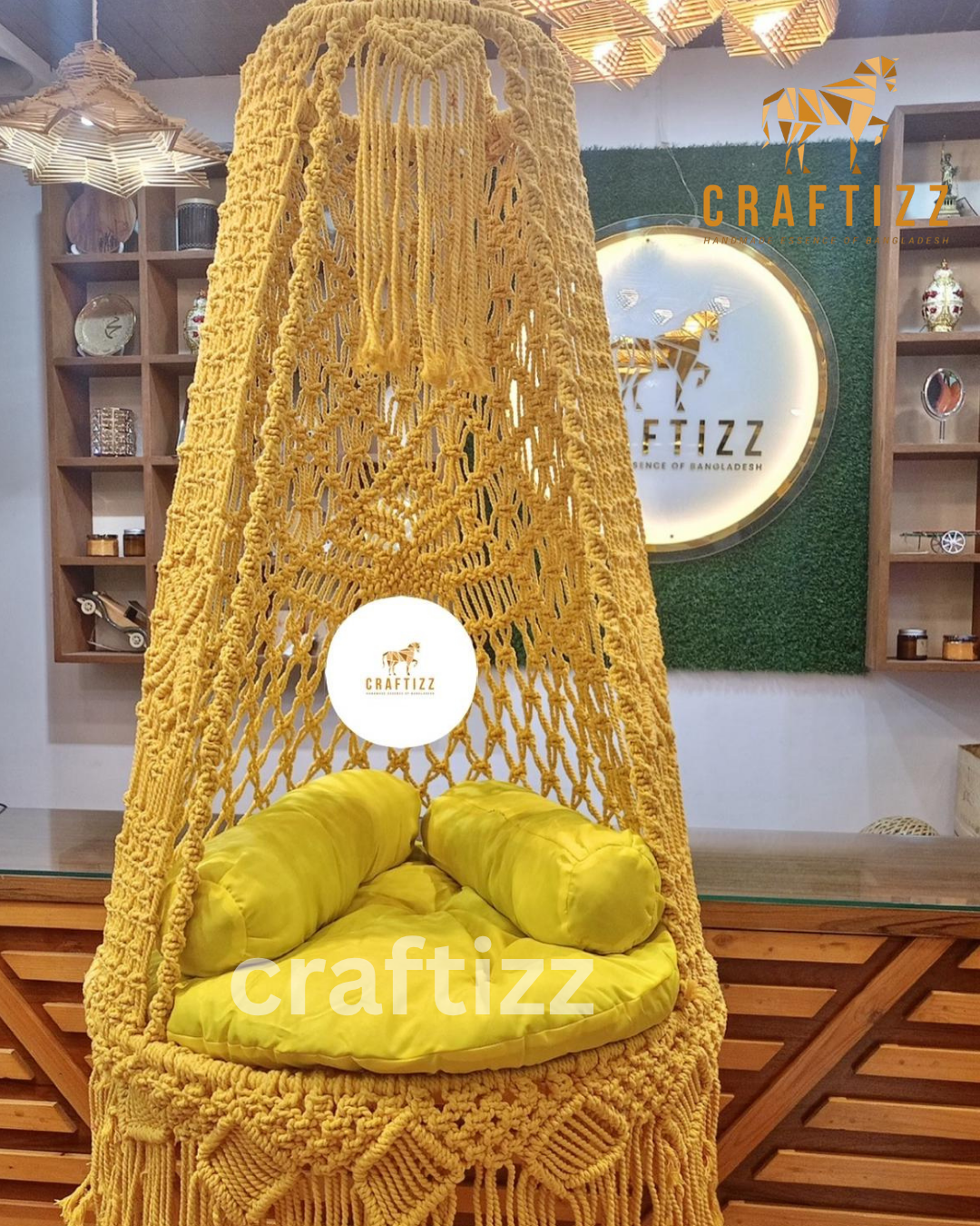Material: Steel frame, 100% pure cotton macramé